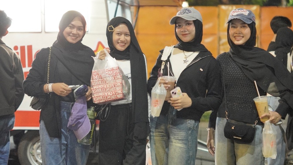 Booth Hotway’s yang simpel tapi eye-catching juga jadi daya tarik tersendiri. Dengan sentuhan warna cerah dan aroma khas yang semerbak, suasananya bikin pengunjung betah nongkrong sambil makan bareng teman. Tim Hotway’s pun sigap melayani pesanan satu per satu, tetap senyum meski antrian nggak pernah sepi. Energi positif dan keramahan tim bikin pengalaman kuliner di tengah event musik jadi makin berkesan.